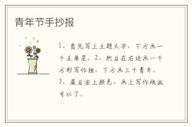 青年节手抄报 知识分享 23年2月12日 编辑 童画 取消关注 关注 私信 1、首先写上主题文字,下方画一个五角星。 2、然后在右边画一个方形写作框,下方画三个青年。 3、最后涂上颜色,画上写作线就可以了。 No related posts. 本文内容由互联网用户自发贡献,该文观点仅代表作者本人。本站仅提供信息存储空间服务,不拥有所有权,不承担相关法律责任。如发现本站有涉嫌抄袭侵权/违法违规的内容, 请发送邮件至 2245678901@qq.com 举报,一经查实,本站将立刻删除。 给TA打赏 共{{data.count}}人 人已打赏