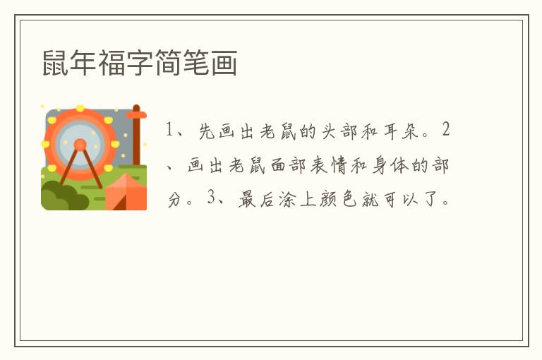 鼠年福字简笔画 知识分享 23年2月15日 编辑 童画 取消关注 关注 私信 1、先画出老鼠的头部和耳朵。 2、画出老鼠面部表情和身体的部分。 3、最后涂上颜色就可以了。 No related posts. 本文内容由互联网用户自发贡献,该文观点仅代表作者本人。本站仅提供信息存储空间服务,不拥有所有权,不承担相关法律责任。如发现本站有涉嫌抄袭侵权/违法违规的内容, 请发送邮件至 2245678901@qq.com 举报,一经查实,本站将立刻删除。 给TA打赏 共{{data.count}}人 人已打赏
