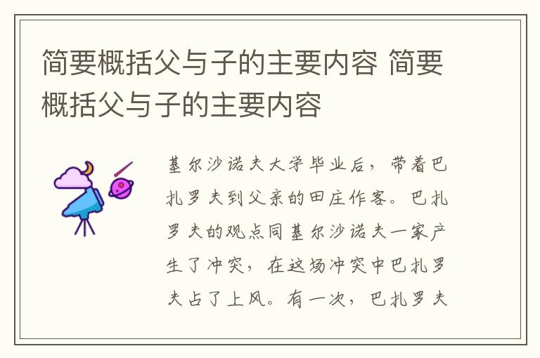 基尔沙诺夫大学毕业后,带着巴扎罗夫到父亲的田庄作客。巴扎罗夫的观点同基尔沙诺夫一家产生了冲突,在这场冲突中巴扎罗夫占了上风。有一次,巴扎罗夫和阿尔卡狄到省城去参加舞会,遇见贵族寡妇奥津佐娃,巴扎罗夫对她产生了爱情,但是遭到拒绝。最后巴扎罗夫回到父母家中,在一次解剖尸体的时候感染病菌而死。