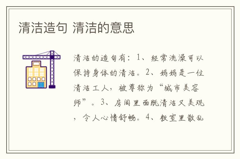 清洁的造句有:1、经常洗澡可以保持身体的清洁。2、妈妈是一位清洁工人,被尊称为“城市美容师”。3、房间里面既清洁又美观,令人心情舒畅。4、教室里散乱地堆放着清洁工具。