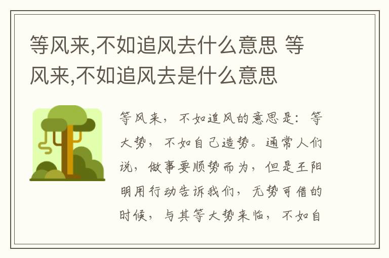 等风来,不如追风的意思是等大势,不如自己造势通常人们说,做事要顺势而为,但是王阳明用行动告诉我们,无势可借的时候,与其等大势来临,不如自己造势。