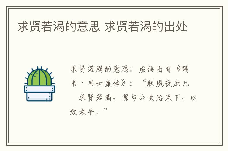 【出处】 《隋书·韦世康传》:“朕夙夜庶几,求贤若渴,冀与公共治天下,以致太平。”