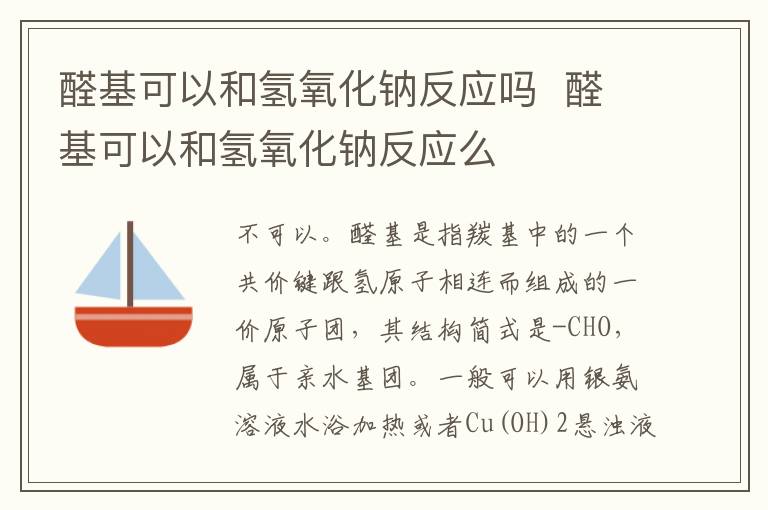醛基可以和氢氧化钠反应吗 醛基可以和氢氧化钠反应么 知识分享 23年2月15日 编辑 童画 取消关注 关注 私信 醛基不可以和氢氧化钠反应。 醛基是指羰基中的一个共价键跟氢原子相连而组成的一价原子团,其结构简式是-CHO,属于亲水基团。一般可以用银氨溶液水浴加热或者Cu(OH)2悬浊液加热来检验醛基。 No related posts. 本文内容由互联网用户自发贡献,该文观点仅代表作者本人。本站仅提供信息存储空间服务,不拥有所有权,不承担相关法律责任。如发现本站有涉嫌抄袭侵权/违法违规的内容, 请发送邮件至 2245678901@qq.com 举报,一经查实,本站将立刻删除。 给TA打赏 共{{data.count}}人 人已打赏