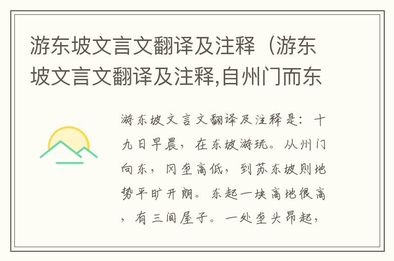 游东坡文言文翻译及注释是:十九日早晨,在东坡游玩。从州门向东,冈垄高低,到苏东坡则地势平旷开朗。东起一块高地很高,有三间屋子。一处垄头昂起,称为“居士亭”,亭下面向南一间屋子很雄伟,四壁都画雪。