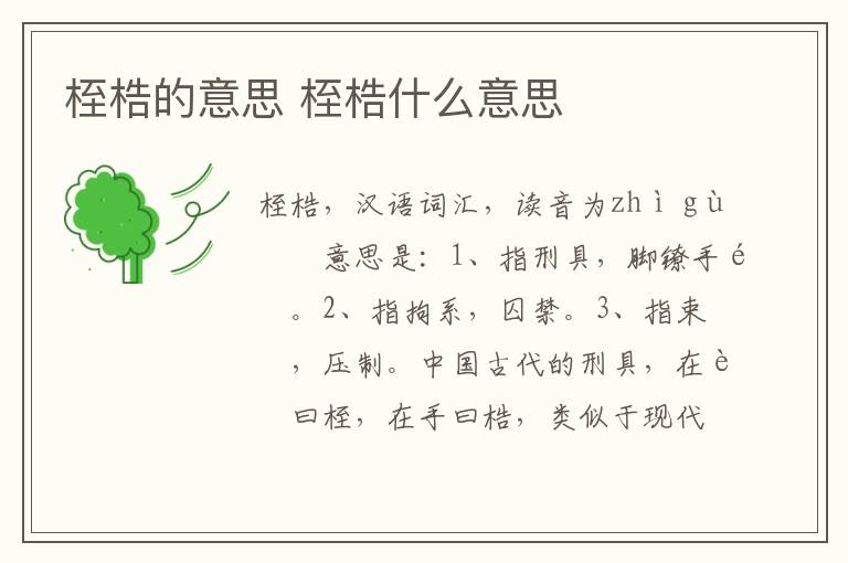中国古代的刑具,在足曰桎,在手曰梏,类似于现代的手铐、脚镣。引申为束缚、压制之意。