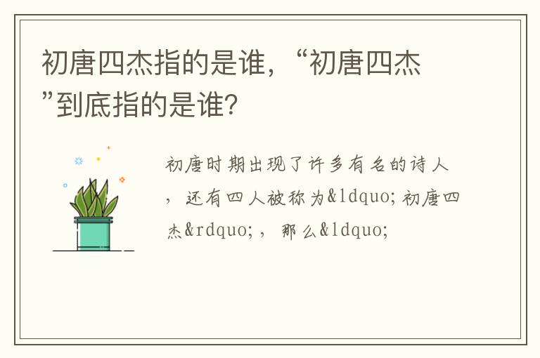 初唐时期出现了许多有名的诗人,还有四人被称为“初唐四杰”,那么“初唐四杰”到底指的是谁呢?让我们一起来了解一下吧。