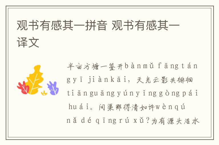 lái。译文:半亩大的方形池塘像一面镜子一样展现在眼前,天空的光彩和浮云的影子都在镜子中一起移动。要问为什么那方塘的水会这样清澈呢?是因为有那永不枯竭的源头为它源源不断地输送活水啊。