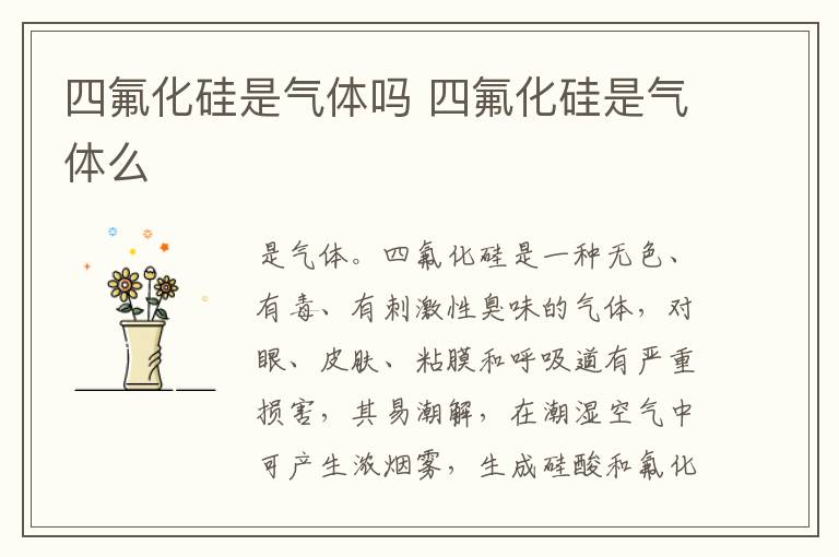 四氟化硅是气体吗 四氟化硅是气体么 知识分享 23年2月15日 编辑 童画 取消关注 关注 私信 四氟化硅是气体。四氟化硅是一种无色、有毒、有刺激性臭味的气体,对眼、皮肤、粘膜和呼吸道有严重损害,其易潮解,在潮湿空气中可产生浓烟雾,生成硅酸和氟化氢两种物质。 No related posts. 本文内容由互联网用户自发贡献,该文观点仅代表作者本人。本站仅提供信息存储空间服务,不拥有所有权,不承担相关法律责任。如发现本站有涉嫌抄袭侵权/违法违规的内容, 请发送邮件至 2245678901@qq.com 举报,一经查实,本站将立刻删除。 给TA打赏 共{{data.count}}人 人已打赏