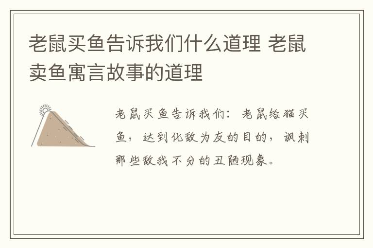 老鼠买鱼是一则寓言故事,告诉我们的道理是:老鼠给猫买鱼,达到化敌为友的目的,讽刺那些敌我不分的丑陋现象。