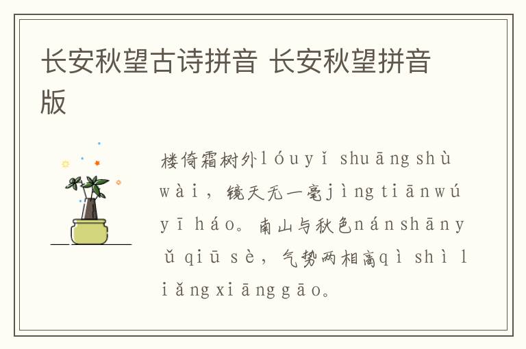楼倚霜树外lóu yǐ shuāng shù wài ,镜天无一毫jìng tiān wú yī háo。南山与秋色nán shān yǔ qiū