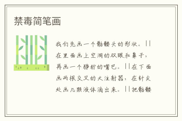 禁毒简笔画 知识分享 23年2月15日 编辑 童画 取消关注 关注 私信 1、我们先画一个骷髅头的形状。 2、在里面画上空洞的双眼和鼻子,再画一个狰狞的嘴巴。 3、在下面画两根交叉的大注射器,在针尖处画几颗液体滴出来。 4、把骷髅头的线条全部用黑色涂笔描粗,再把注射器里的液体涂上红色。 5、并把尾端线条涂上蓝色,最后把滴出来的液体涂上红色。 No related posts. 本文内容由互联网用户自发贡献,该文观点仅代表作者本人。本站仅提供信息存储空间服务,不拥有所有权,不承担相关法律责任。如发现本站有涉嫌抄袭侵权/违法违规的内容, 请发送邮件至 2245678901@qq.com 举报,一经查实,本站将立刻删除。 给TA打赏 共{{data.count}}人 人已打赏