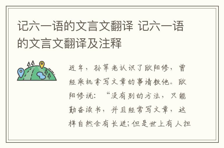《记六一语》是一篇宋代的文言文,选自《东坡志林》,作者是宋代的苏轼。这篇文章的主人公欧阳修是文学大家,才华绝世,饮誉古今,犹能这样重视别人的成功经验,并引为良训,足见他治学的严谨、刻苦、勤奋。由此,它给了我们—个很大的教益:文章的好坏与读书的勤懒、练笔的多少,有密切联系。