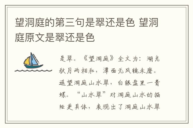 《望洞庭》第三句原文是翠,全文为“湖光秋月两相和,潭面无风镜未磨。遥望洞庭山水翠,白银盘里一青螺。”