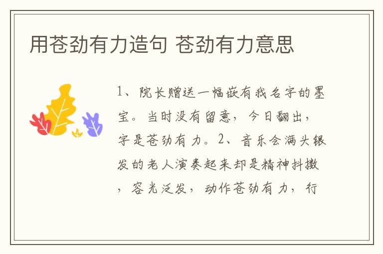 苍劲有力,汉语成语,拼音是cāng jìng yǒu lì,意思是雄健,挺拔有力。