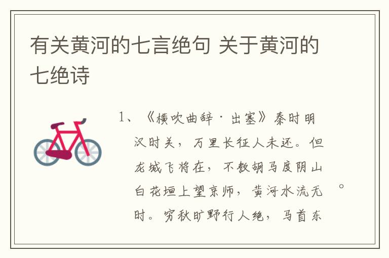 1、《横吹曲辞·出塞》秦时明月汉时关,万里长征人未还。但使龙城飞将在,不教胡马度阴山。白花垣上望京师,黄河水流无尽时。穷秋旷野行人绝,马首东来知是谁。2、《送裴图南》黄河渡头归问津,离家几日茱萸新。漫道闺中飞破镜,犹看陌上别行人。3、《送裴图南》黄河渡头归问津,离家几日茱萸新。漫道闺中飞破镜,犹看陌上别行人。