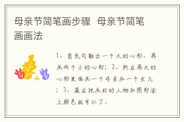 母亲节简笔画步骤 母亲节简笔画画法 知识分享 23年2月16日 编辑 童画 取消关注 关注 私信 1、首先勾勒出一个大的心形,再画两个小的心形; 2、然后再大的心形里面画一个母亲和一个女儿; 3、最后把画好的人物和图形涂上颜色就可以了。 No related posts. 本文内容由互联网用户自发贡献,该文观点仅代表作者本人。本站仅提供信息存储空间服务,不拥有所有权,不承担相关法律责任。如发现本站有涉嫌抄袭侵权/违法违规的内容, 请发送邮件至 2245678901@qq.com 举报,一经查实,本站将立刻删除。 给TA打赏 共{{data.count}}人 人已打赏