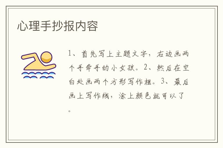心理手抄报内容 知识分享 23年2月17日 编辑 童画 取消关注 关注 私信 1、首先写上主题文字,右边画两个手牵手的小女孩。 2、然后在空白处画两个方形写作框。 3、最后画上写作线,涂上颜色就可以了。 No related posts. 本文内容由互联网用户自发贡献,该文观点仅代表作者本人。本站仅提供信息存储空间服务,不拥有所有权,不承担相关法律责任。如发现本站有涉嫌抄袭侵权/违法违规的内容, 请发送邮件至 2245678901@qq.com 举报,一经查实,本站将立刻删除。 给TA打赏 共{{data.count}}人 人已打赏