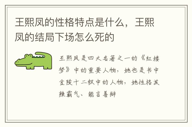 以上就是小编整理的王熙凤的性格特点,感谢阅读。