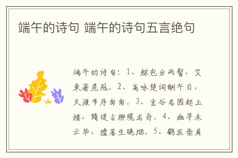 端午节诗句有: