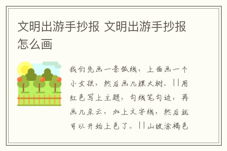 文明出游手抄报 文明出游手抄报怎么画简单又漂亮 知识分享 23年2月17日 编辑 童画 取消关注 关注 私信 1、我们先画一条弧线,上面画一个小女孩,然后画几棵大树。 2、用红色写上主题,勾线笔勾边,再画几朵云,加上文字线,然后就可以开始上色了。 3、山坡涂褐色,草丛涂绿色,然后在给人物和树干涂上颜色,用蓝色涂云朵暗部,最后用绿色涂树的边框,这样就完成啦。 No related posts. 本文内容由互联网用户自发贡献,该文观点仅代表作者本人。本站仅提供信息存储空间服务,不拥有所有权,不承担相关法律责任。如发现本站有涉嫌抄袭侵权/违法违规的内容, 请发送邮件至 2245678901@qq.com 举报,一经查实,本站将立刻删除。 给TA打赏 共{{data.count}}人 人已打赏