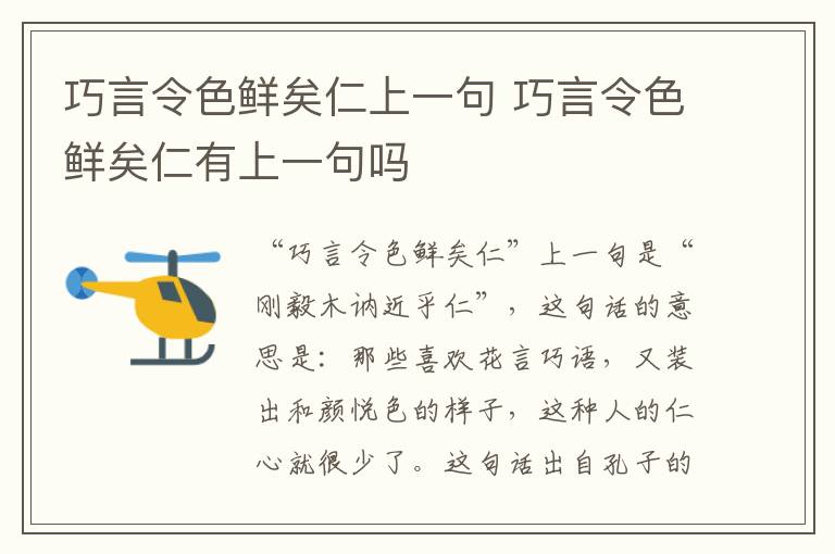 “巧言令色鲜矣仁”上一句是“刚毅木讷近乎仁”,这句话的意思是:那些喜欢花言巧语,又装出和颜悦色的样子,这种人的仁心就很少了。这句话出自孔子的《论语·学而》,主要是用来告诫自己的弟子,无论是做人还是做事,都应真诚坦荡。