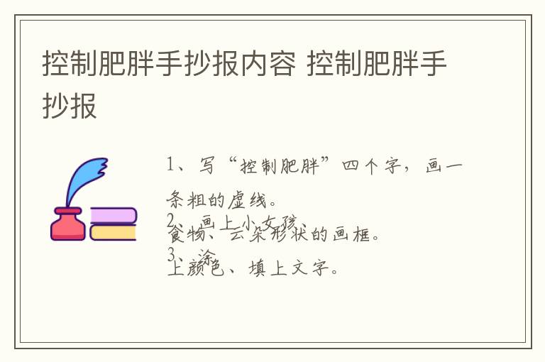 控制肥胖手抄报内容 控制肥胖手抄报 知识分享 23年2月18日 编辑 童画 取消关注 关注 私信 1、写“控制肥胖”四个字,画一条粗的虚线。 2、画上小女孩、食物、云朵形状的画框。 3、涂上颜色、填上文字。 No related posts. 本文内容由互联网用户自发贡献,该文观点仅代表作者本人。本站仅提供信息存储空间服务,不拥有所有权,不承担相关法律责任。如发现本站有涉嫌抄袭侵权/违法违规的内容, 请发送邮件至 2245678901@qq.com 举报,一经查实,本站将立刻删除。 给TA打赏 共{{data.count}}人 人已打赏