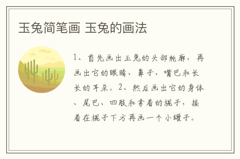 玉兔简笔画 玉兔的画法 知识分享 23年2月18日 编辑 童画 取消关注 关注 私信 1、首先画出玉兔的头部轮廓,再画出它的眼睛、鼻子、嘴巴和长长的耳朵。 2、然后画出它的身体、尾巴、四肢和拿着的棍子,接着在棍子下方再画一个小罐子。 3、最后涂上颜色就可以了。 No related posts. 本文内容由互联网用户自发贡献,该文观点仅代表作者本人。本站仅提供信息存储空间服务,不拥有所有权,不承担相关法律责任。如发现本站有涉嫌抄袭侵权/违法违规的内容, 请发送邮件至 2245678901@qq.com 举报,一经查实,本站将立刻删除。 给TA打赏 共{{data.count}}人 人已打赏