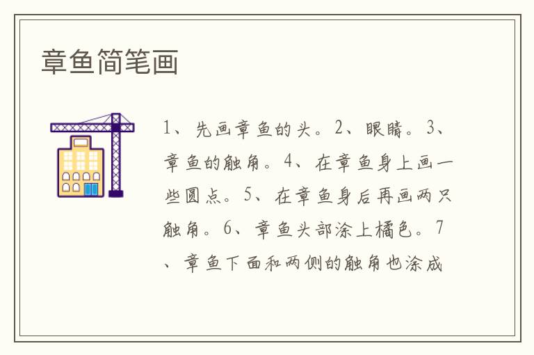 章鱼简笔画 知识分享 23年2月18日 编辑 童画 取消关注 关注 私信 1、先画章鱼的头。 2、眼睛。 3、画出章鱼的触角。 4、在章鱼身上画一些圆点作为装饰。 5、之后在章鱼身后再画两只触角。 6、下面给章鱼上色章鱼的头部涂上橘色。 7、章鱼下面和两侧的触角也涂成橘色。 8、之后把章鱼后面的触角涂成粉红色。 9、最后把章鱼身上的圆点涂上红色就可以了。 No related posts. 本文内容由互联网用户自发贡献,该文观点仅代表作者本人。本站仅提供信息存储空间服务,不拥有所有权,不承担相关法律责任。如发现本站有涉嫌抄袭侵权/违法违规的内容, 请发送邮件至 2245678901@qq.com 举报,一经查实,本站将立刻删除。 给TA打赏 共{{data.count}}人 人已打赏