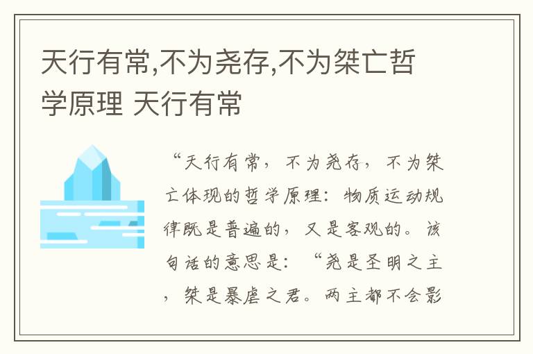 “天行有常,不为尧存,不为桀亡体现的哲学原理:物质运动规律既是普遍的,又是客观的。该句话的意思是:“尧是圣明之主,桀是暴虐之君。两主都不会影响天行。无论是升平之世,还是落难当道,天行有常。”是古代朴素唯物主义观点。