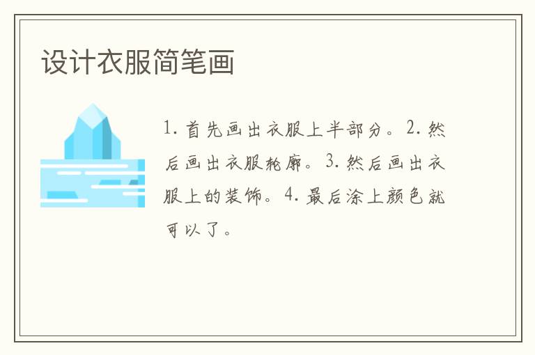 设计衣服简笔画 知识分享 23年2月18日 编辑 童画 取消关注 关注 私信 1.首先画出衣服上半部分。 2.然后画出衣服轮廓。 3.然后画出衣服上的装饰。 4.最后涂上颜色就可以了。 No related posts. 本文内容由互联网用户自发贡献,该文观点仅代表作者本人。本站仅提供信息存储空间服务,不拥有所有权,不承担相关法律责任。如发现本站有涉嫌抄袭侵权/违法违规的内容, 请发送邮件至 2245678901@qq.com 举报,一经查实,本站将立刻删除。 给TA打赏 共{{data.count}}人 人已打赏