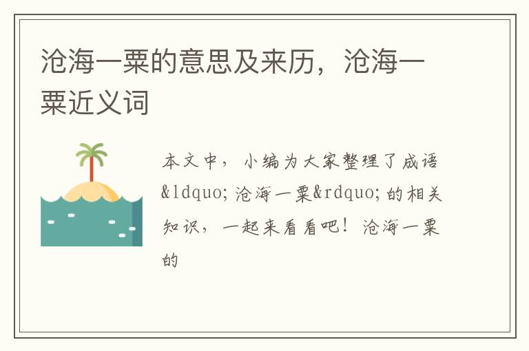 本文中,小编为大家整理了成语“沧海一粟”的相关知识,一起来看看吧!