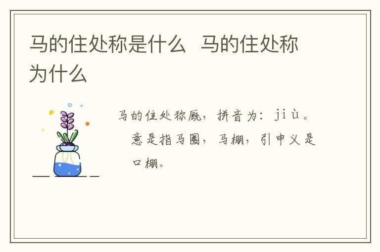 马的住处称是什么 马的住处称为什么 知识分享 23年2月18日 编辑 童画 取消关注 关注 私信 马的住处称厩,拼音为:jiù。本意是指马圈,马棚,引申义是牲口棚。 鸟的住处称(巢) 、狗的住处称(窝) 、羊的住处称(圈) 、兔的住处称(窟) 、虎的住处称(穴) 、蛇的住处称(洞) 、鸡的住处称(笼) 、牛的住处称(棚)。 No related posts. 本文内容由互联网用户自发贡献,该文观点仅代表作者本人。本站仅提供信息存储空间服务,不拥有所有权,不承担相关法律责任。如发现本站有涉嫌抄袭侵权/违法违规的内容, 请发送邮件至 2245678901@qq.com 举报,一经查实,本站将立刻删除。 给TA打赏 共{{data.count}}人 人已打赏