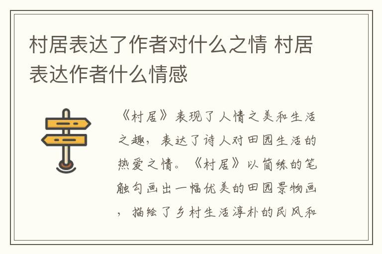 《村居》表现了人情之美和生活之趣,表达了诗人对田园生活的热爱之情。《村居》以简练的笔触勾画出一幅优美的田园景物画,描绘了乡村生活淳朴的民风和和谐的生活趣味。