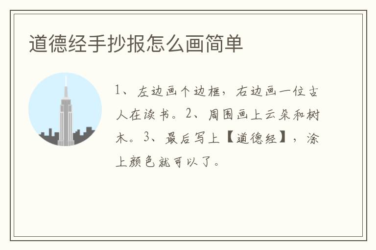 道德经手抄报怎么画简单又漂亮 知识分享 23年2月18日 编辑 童画 取消关注 关注 私信 1、左边画个边框,右边画一位古人在读书。 2、周围画上云朵和树木。 3、最后写上【道德经】,涂上颜色就可以了。 No related posts. 本文内容由互联网用户自发贡献,该文观点仅代表作者本人。本站仅提供信息存储空间服务,不拥有所有权,不承担相关法律责任。如发现本站有涉嫌抄袭侵权/违法违规的内容, 请发送邮件至 2245678901@qq.com 举报,一经查实,本站将立刻删除。 给TA打赏 共{{data.count}}人 人已打赏