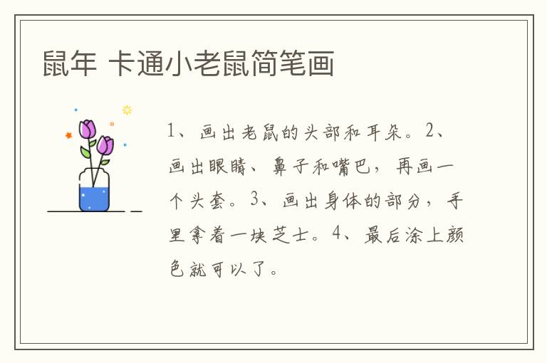 鼠年 卡通小老鼠简笔画 知识分享 23年2月18日 编辑 童画 取消关注 关注 私信 1、画出老鼠的头部和耳朵。 2、画出眼睛、鼻子和嘴巴,再画一个头套。 3、画出身体的部分,手里拿着一块芝士。 4、最后涂上颜色就可以了。 No related posts. 本文内容由互联网用户自发贡献,该文观点仅代表作者本人。本站仅提供信息存储空间服务,不拥有所有权,不承担相关法律责任。如发现本站有涉嫌抄袭侵权/违法违规的内容, 请发送邮件至 2245678901@qq.com 举报,一经查实,本站将立刻删除。 给TA打赏 共{{data.count}}人 人已打赏