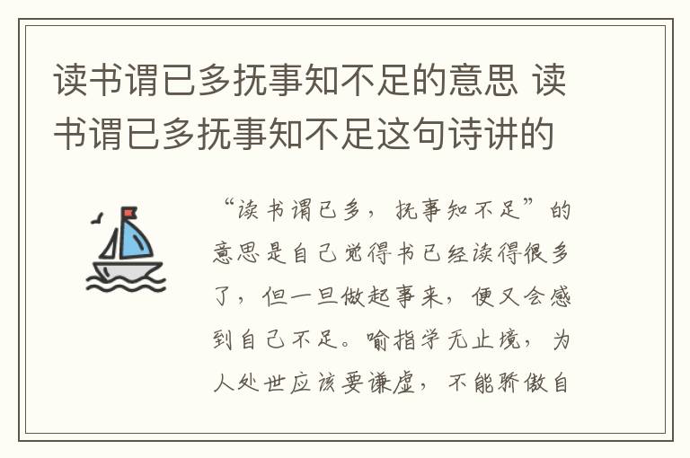 “读书谓已多,抚事知不足”的意思是自己觉得书已经读得很多了,但一旦做起事来,便又会感到自己不足。喻指学无止境,为人处世应该要谦虚,不能骄傲自满。两句诗写出了古往今来众多的人的共同感受。