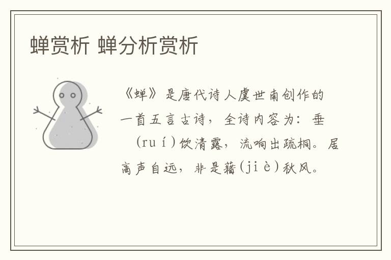 《蝉》是唐代诗人虞世南创作的一首五言古诗,全诗内容为:
