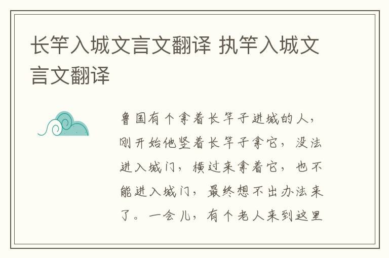 译文:鲁国有个拿着长竿子进城的人,刚开始他竖着长竿子拿它,没法进入城门,横过来拿着它,也不能进入城门,最终想不出办法来了。一会儿,有个老人来到这里说:“我并不是圣贤,只不过是见到的事情多了,为什么不用锯子将长竿从中截断后进入城门呢?”那个鲁国人于是依照老人的办法将长竿子截断了。