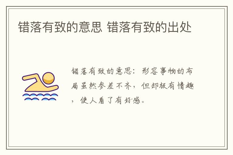 【释义】 形容事物的布局虽然参差不齐,但却极有情趣,使人看了有好感。