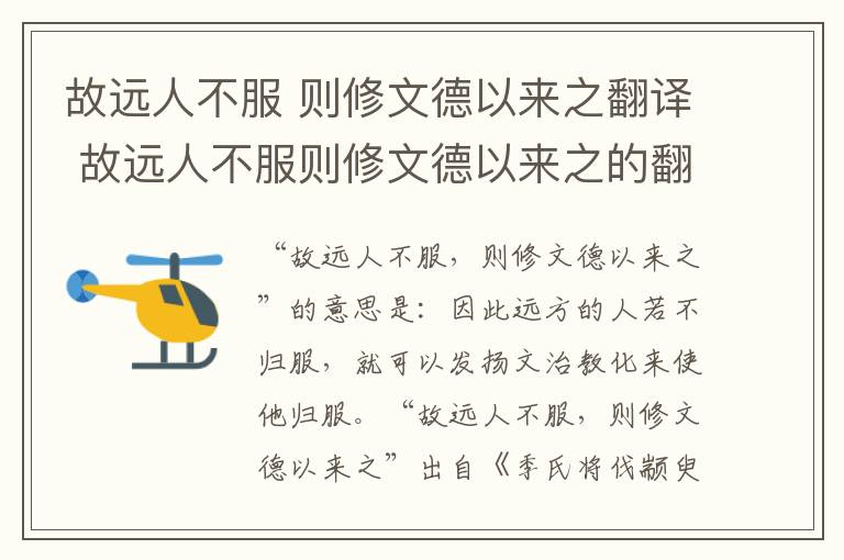 “故远人不服,则修文德以来之”的意思是:因此远方的人若不归服,就可以发扬文治教化来使他归服。“故远人不服,则修文德以来之”出自《季氏将伐颛臾》,表达孔子反对武力征伐的思想。