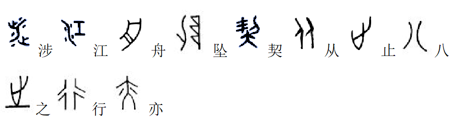 楚人有涉⑴江⑵者,其⑶剑自⑷舟⑸中坠⑹于⑺水,遽jù⑻契⑼其舟,曰:“是⑽吾⑾剑之所从坠。”舟止,从其所契者入水求⑿之⒀。舟已行矣⒁,而⒂剑不行,求剑若此,不亦⒃惑⒄乎⒅?