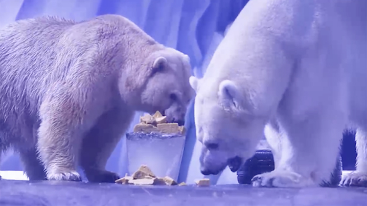 正值端午节,为了让北极熊也过一个幸福安康的端午,上海海昌海洋公园特意为北极熊定制了专属鱼味儿“粽”。