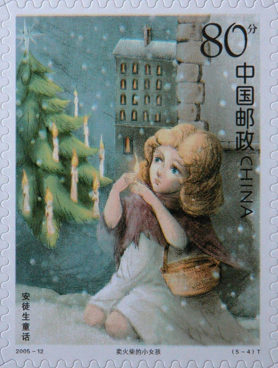 不过在一个寒冷的早晨,这个小姑娘却坐在一个墙角里;她的双颊通红,嘴唇发出微笑,她已经死了——在旧年的除夕冻死了。新年的太阳升起来了,照着她小小的尸体!她坐在那儿,手中还捏着火柴——其中有一扎差不多都烧光了。
