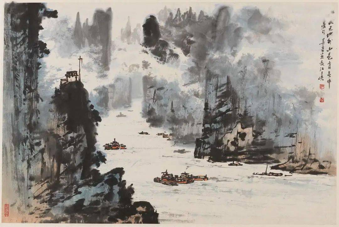 江水滔滔远去,好像一直涌流到天地之外,两岸山色时隐时现,若有若无。