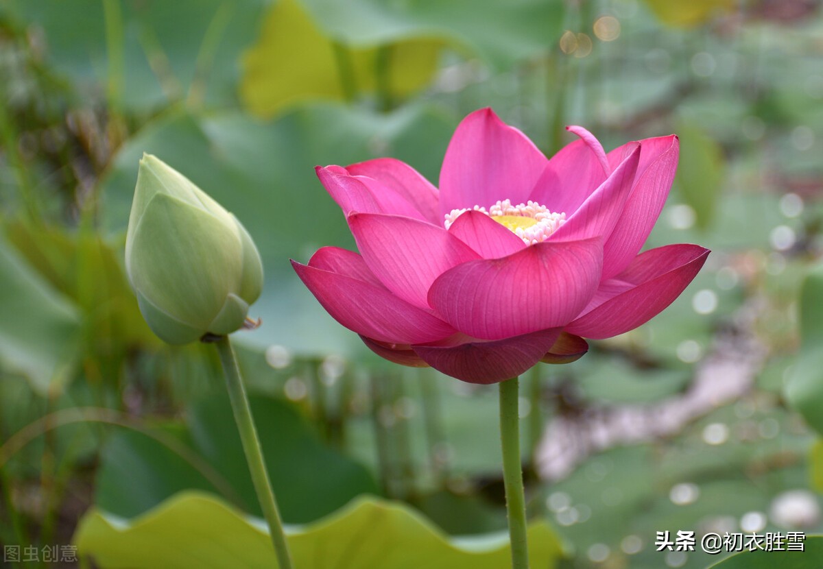 ”惟有绿荷红菡萏,卷舒开合任天真。