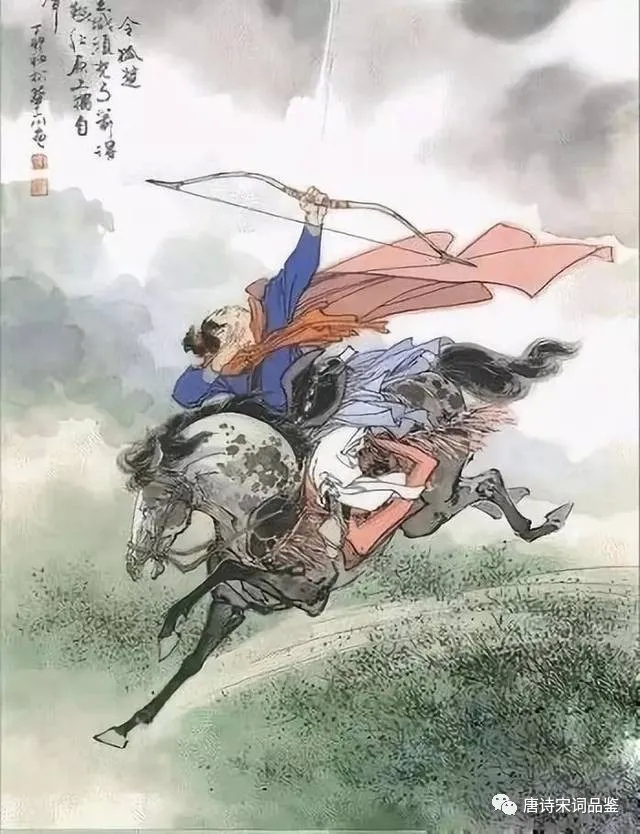 第二首,写游侠的出征边塞。这首诗里所说的“仕汉”“骠骑”,以及下面两首诗里出现的“五单于”“汉家君臣”等,都是借汉事喻唐,这在唐诗中几乎是习闻熟见的惯例。这里说少年委身事君,入仕之初便担任了羽林郎的职务。由于羽林郎宿仗卫内、亲近帷幄,地位十分重要,故非一般等闲之辈可以入选。《后汉书·地理志》云:“汉兴,六郡良家子选给羽林。”由此即可见一斑。骠骑指武帝时的名将霍去病,曾多次统率大军反击匈奴侵扰,战功显赫。少年报国心切,一心想效功当世,一旦国家有事,便毫不犹豫地随军出征。边关是遥远荒寒的,沙场的搏杀更是出生入死,而主人公“明知山有虎,偏向虎山行”,这种为国献身的精神,和曹植的《白马篇》里“捐躯赴国难,视死忽如归”的少年英雄是一脉相承的。所不同的是,曹诗通篇是用第三人称的视角来加以客观的描述和赞颂,这里却借少年自己的口吻直抒胸臆:第三句以自诘的口气反挑,使文势陡起波澜,末句则以斩截之语收束,而“孰”“不”“纵”“犹”等虚词的连用,又在接二连三的转折中不断加强语气,活脱地传达出少年从容朱毅的神情和义无返顾的决心。这种借顿挫的用笔展示人物内心世界的手法,不仅很有力度,而且进一步深化了游侠“意气”的内涵。