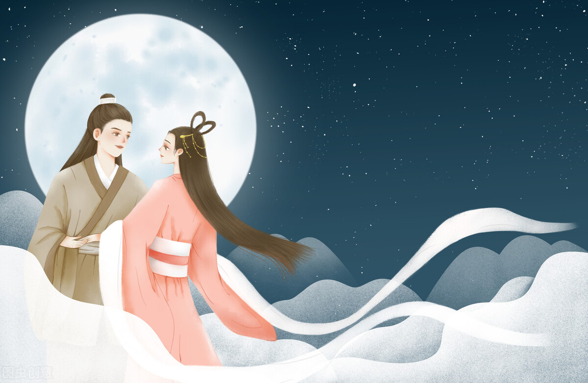 七夕节,我们中华民族传统的节日,一直流传着牛郎织女的爱情故事,一年一次的鹊桥相会,千百年间引来无数儿女为之注目、为之向往、为之抒情。古老传说,牛郎是人间的放牛郎,父母早亡,受兄嫂虐待,每天和一头老牛一起生活,日子艰苦。织女是天上王母娘娘的孙女,是有着超凡“女红”技艺的神仙。原本不可能相识相爱的牛郎织女,但在老牛牵线下,成就了姻缘。婚后,俩人男耕女织,相亲相爱,并育有一儿一女。故事至此,让人们看到了古时“巧配”的爱情如纯洁花朵,结出了幸福婚姻的果实。可以说,“七夕”故事的开头,正是热恋中的少男少女最为盼望的归宿,美丽的爱情之花,结出了婚姻之果,还有什么比这更幸福的事?此时,相爱的人们都会誓言,执子之手,与子偕老,相伴到白头。