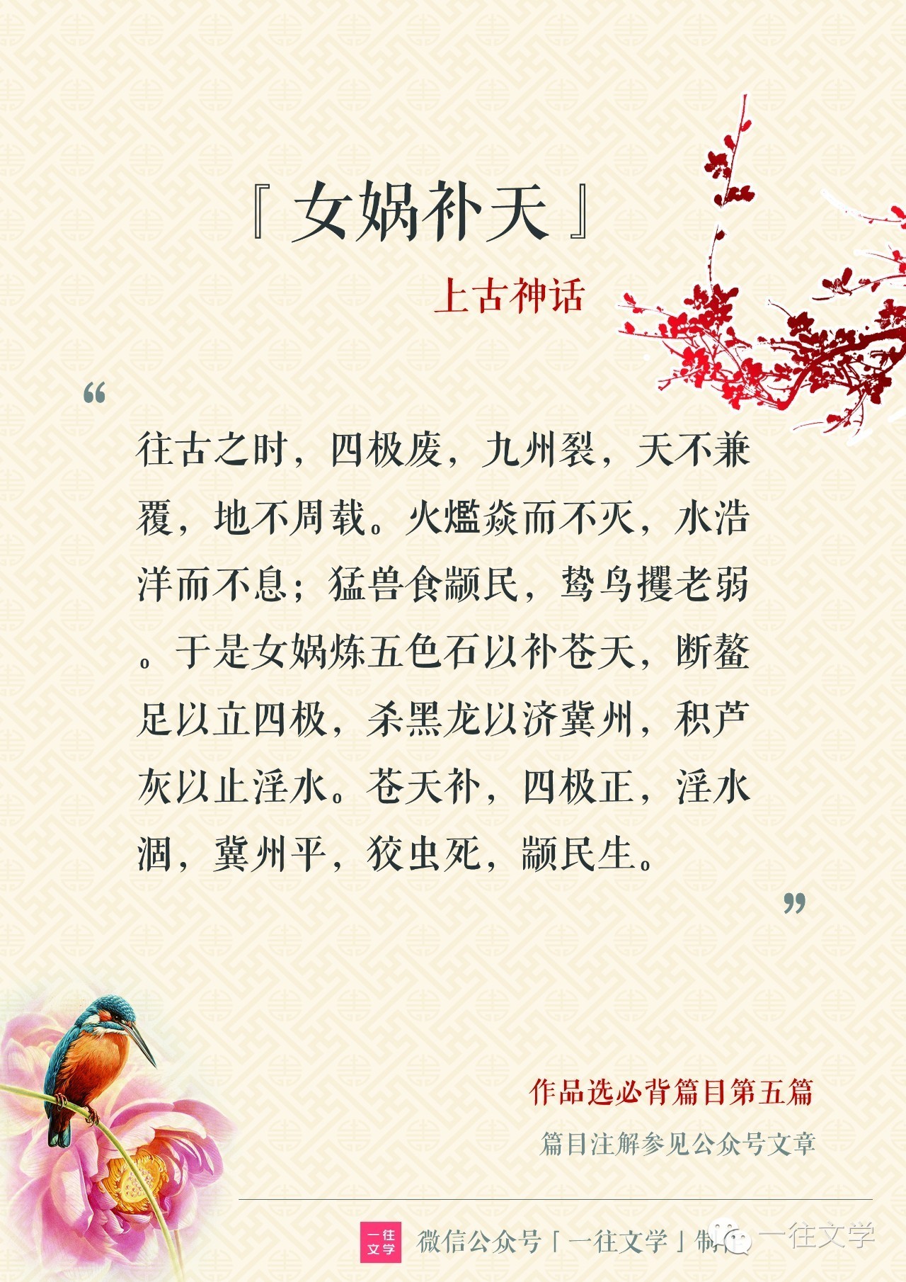 这则神话选自《淮南子·览冥训》。该书是西汉淮南王刘安及其 门客集纂辑的的一部宣杨杂家思想的哲理著作。书中保留了不少古代神话资料。女娲是中国神话传说中的一位重要女神。她不但“抟黄土作人”,成为华夏民族的创世始祖,而且拯救人类于危难之中, 是人们心中十分崇拜的救世主。