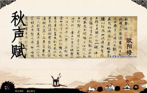 《秋声赋》作于嘉祐四年(1059),欧阳修时年53岁,这是他继《醉翁亭记》后的又一名篇。它骈散结合,铺陈渲染,词采讲究,是宋代文赋的典范。