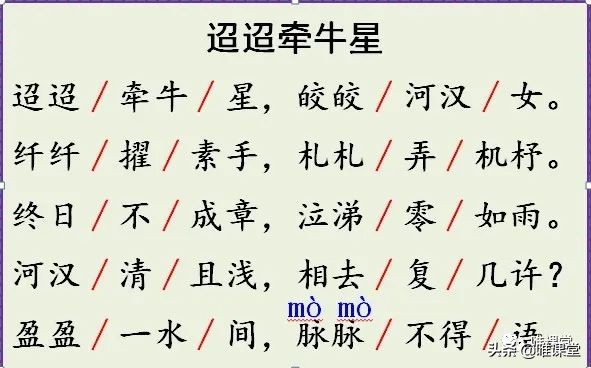 1.迢迢∕牵牛∕星,皎皎∕河汉∕女